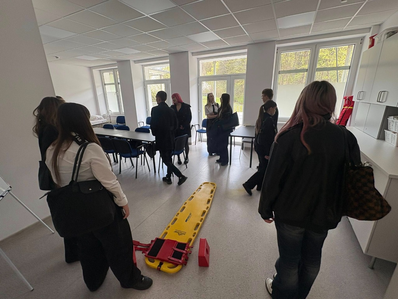 Wizyta w budynku E, czyli Centrum Symulacji Medycznych, pozwoliła naszym uczniom przyjrzeć się z bliska wyposażeniu sal symulacyjnych dla studentów, zbliżonych do rzeczywistości medycznej. Była również okazja do zwiedzenia karetki i zapoznania się z jej aparaturą. Dodatkowo młodzież odwiedziła również nowo wyremontowane piętro w budynku C, gdzie znajdują się m.in. sale dydaktyczne, gabinet psychologiczny, czy sala ratownictwa medycznego.