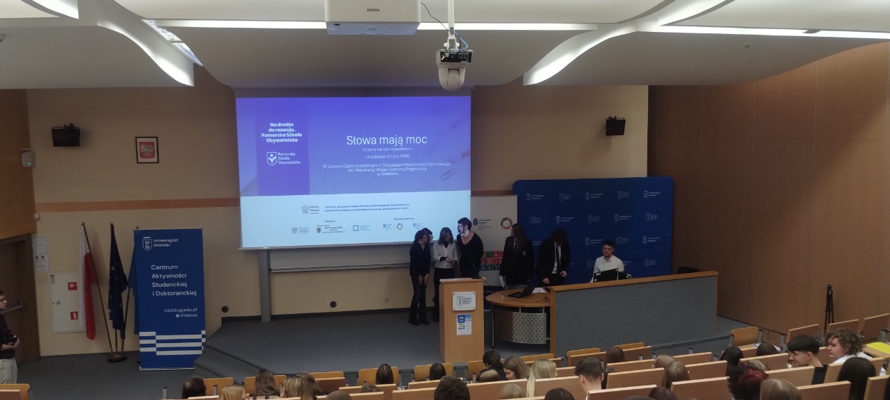 „Pomorska Kampania Odpowiedzialnego Słowa”, którego celem było promowanie kultury dialogu, przeciwdziałanie mowie nienawiści oraz budowanie świadomości wpływu słów na relacje społeczne. W wydarzeniu wzięli udział uczniowie pomorskich szkół, nauczyciele, przedstawiciele instytucji wspierających projekt oraz eksperci zajmujący się komunikacją i edukacją obywatelską.