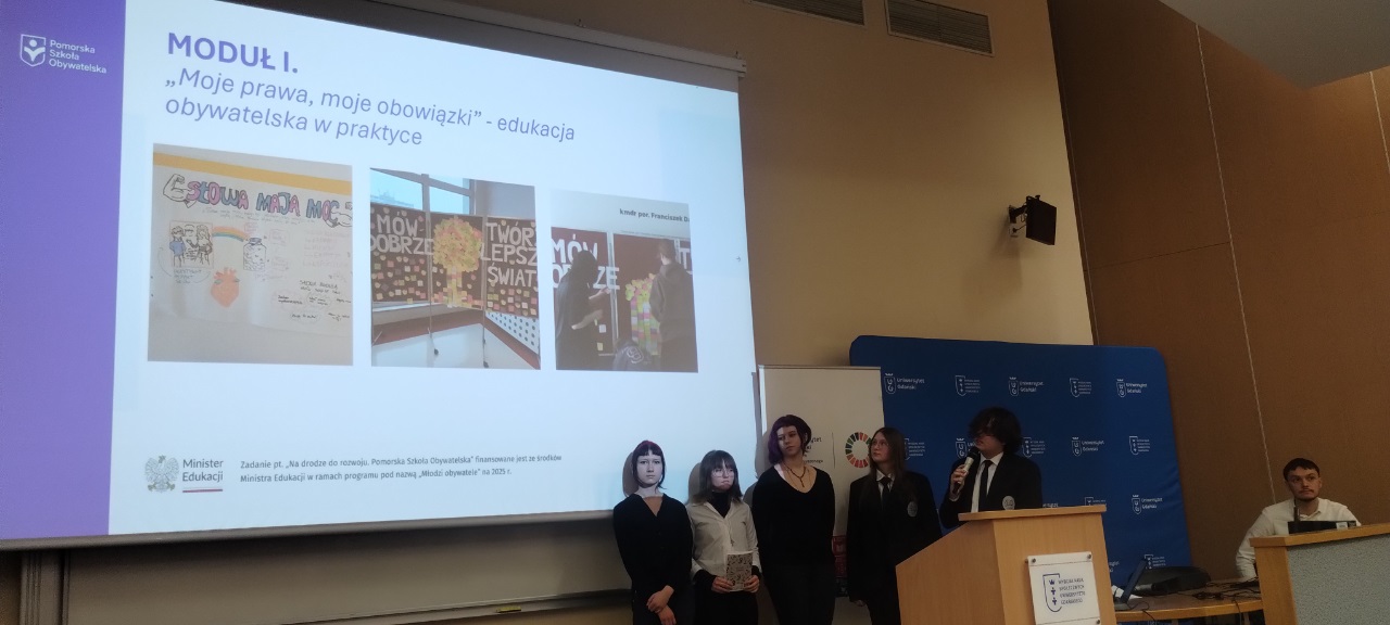 W ramach projektu „Na drodze do rozwoju. Pomorska Szkoła Obywatelska” zaplanowano realizację spójnego i komplementarnego zestawu działań edukacyjnych, których celem jest rozwój postaw obywatelskich, wzmocnienie kompetencji społecznych oraz zwiększenie odporności młodzieży na dezinformację i język przemocy w przestrzeni publicznej.