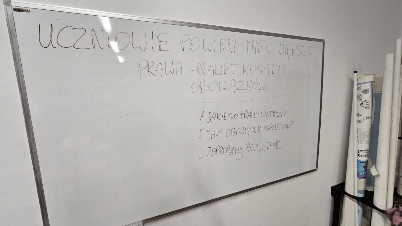 Podczas warsztatów podjęto rozmowy o tym, jakie prawa przysługują każdemu dziecku, uczniowi oraz dlaczego obowiązki są równie ważne w codziennym życiu szkolnym i społecznym.