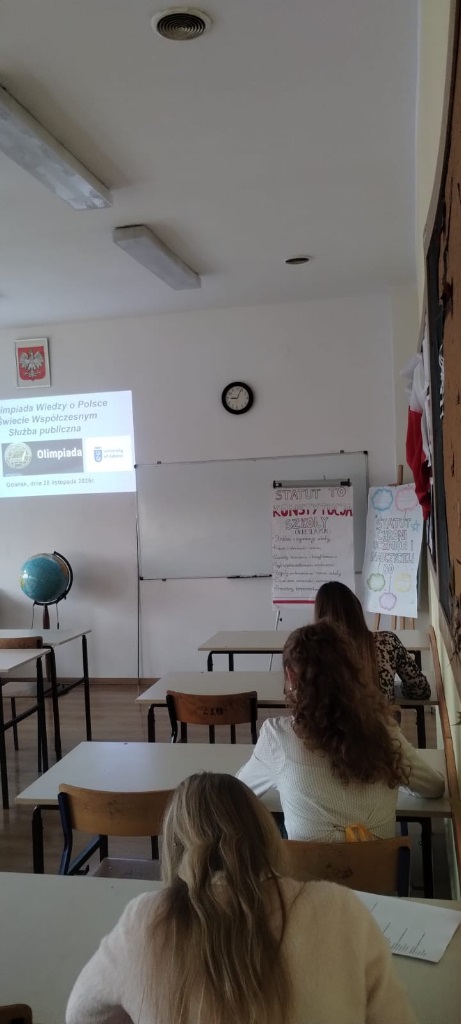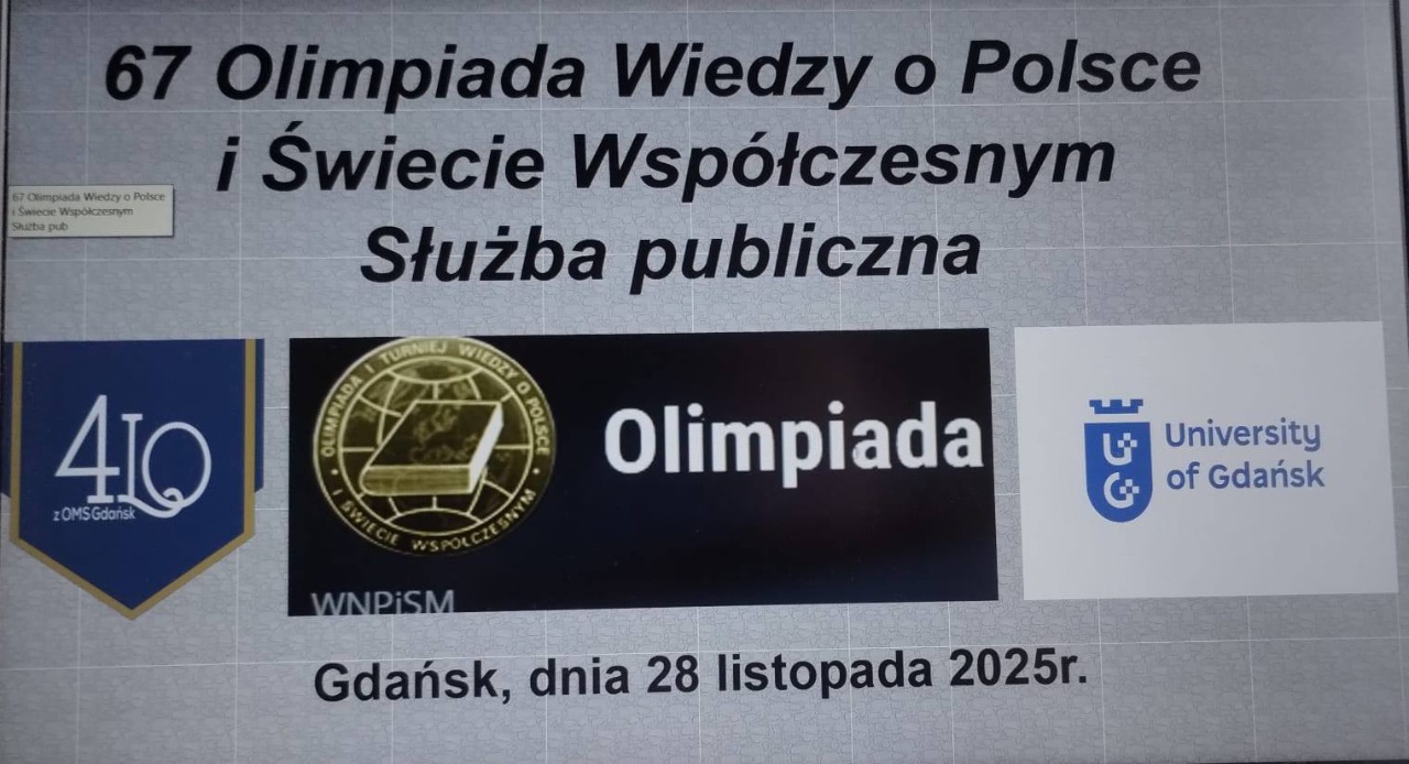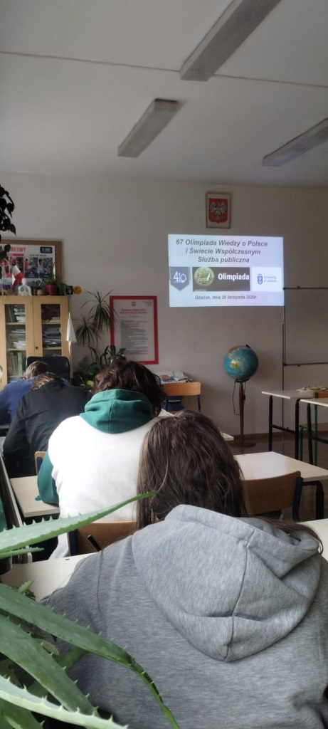 W dniu 28.11.2025 uczniowie naszej szkoły uczestniczyli w eliminacjach szkolnych 67 Olimpiady Wiedzy o Polsce i Świecie Współczesnym organizowanej przez Uniwersytet Warszawski, Biuro Regionalne przy Uniwersytecie Gdańskim.