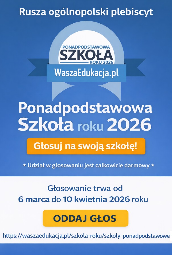 trwa ogólnopolski plebiscyt „Ponadpodstawowa Szkoła Roku 2026”, w którym bierze udział również Państwa szkoła.