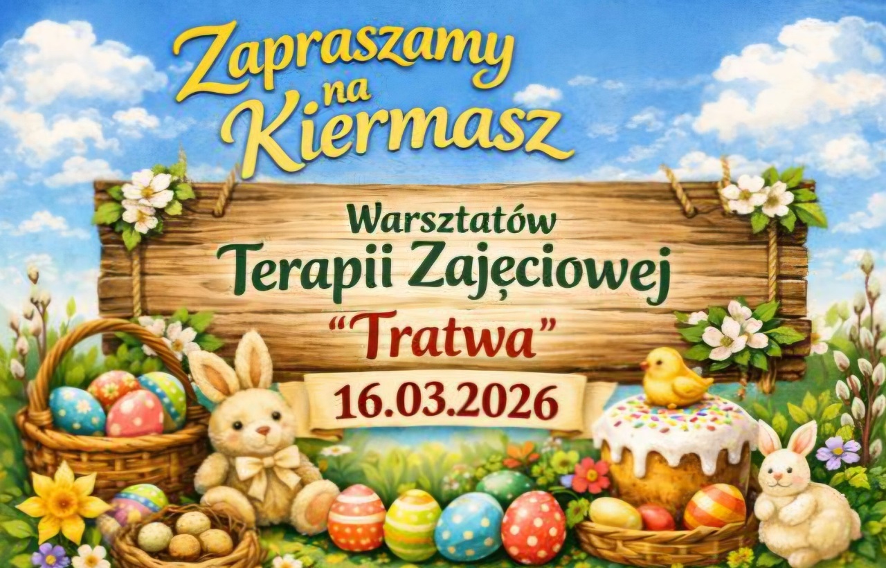 Dnia 16.03.2026 roku w naszej szkole odbędzie się Wielkanocny Kiermasz Warsztatu Terapii Zajęciowej „Tratwa”.