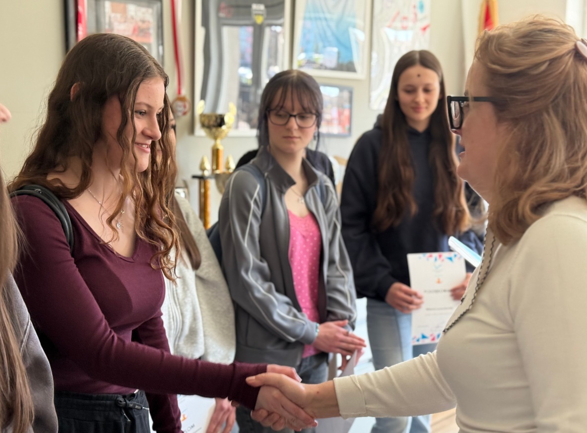 Oprócz gratulacji, uczennice otrzymały dyplomy, słodki upominek oraz ocenę wyrażona w procentach.