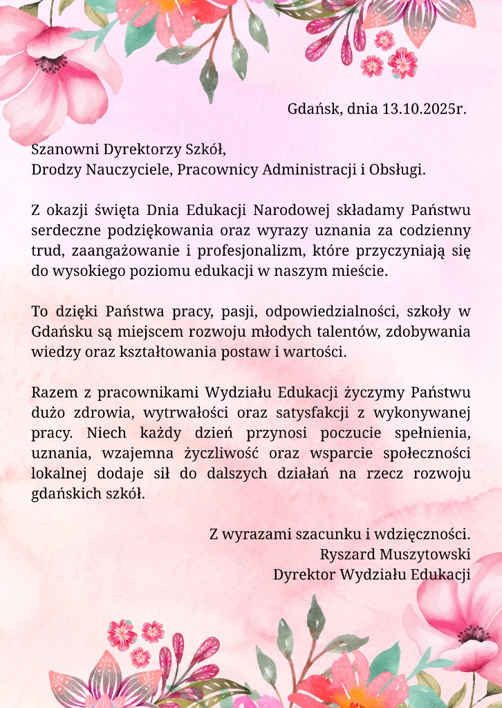 Życzenia z okazji Dnia Edukacji Narodowej - IV Liceum Ogólnokształcące im. Marynarzy Wojsk Ochrony Pogranicza