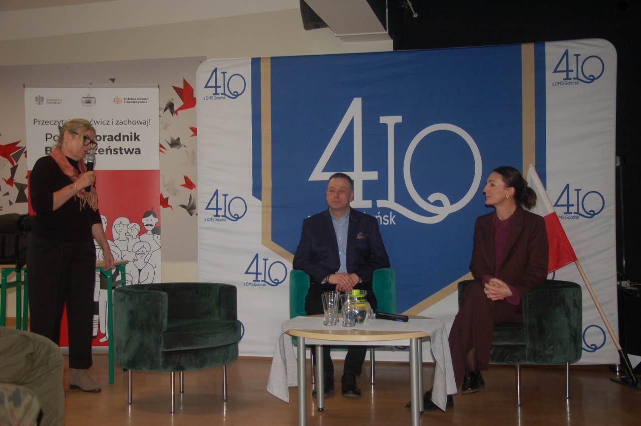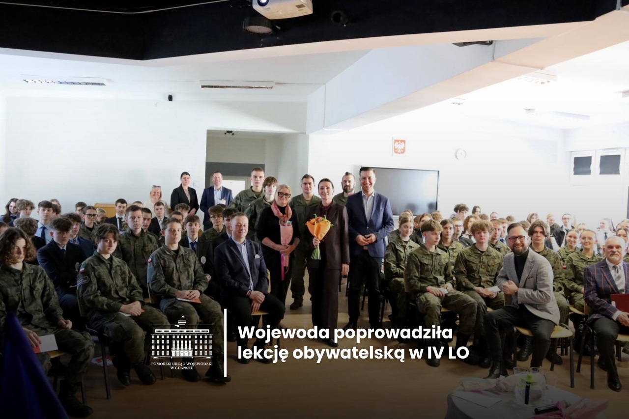 W 4LOzOMS / Centrum Edukacji Bezpieczeństwa, w dniu 6 marca 2026r. odbyła się lekcja obywatelska z udziałem Pani Beaty Rutkiewicz Wojewody Pomorskiej. To wyjątkowe spotkanie edukacyjne, które pozwoliło uczniom poznać w praktyce funkcjonowanie administracji rządowej oraz znaczenie bezpieczeństwa państwa i obywateli.